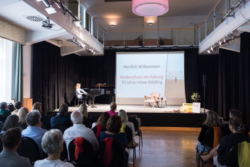 Dipl. Psychologin und Psychotherapeutin Margarethe Kruczek-Schumacher sprach in ihrem Fachvortrag über die körperlichen Symptomatiken nach traumatischen Erlebnissen. Schriftstellerin Valerie Fritsch las aus ihrem Roman „Zitronen“, in dem die Geschichte eines Jungen, dessen Kindheit durch die Gewalt beider Elternteile geprägt ist, erzählt wird. Schülerinnen und Schüler der Montessori ErLEBnisschule Mödling erfreuten die Gäste sowohl mit musikalischen Darbietungen als auch mit einer Tanzperformance und einem Poetry-Slam. Der Kurzfilm „Burned-in“ von Daniel Zineldin und Vivienne Dejon wurde gezeigt und auch das Team der möwe Mödling selbst präsentierte in einem bei der letzten Teamklausur entstandenen Film seine Gedanken zum Thema „Kinderschutz mit Haltung“.