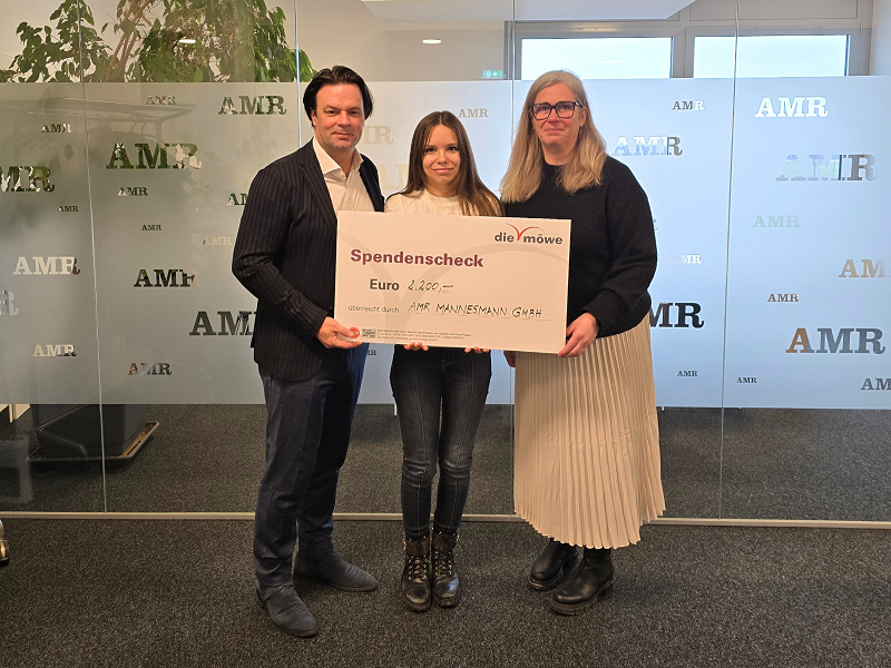 Der Engineering Dienstleister AMR Mannesmann überreichte einen Spendenscheck von € 2.200 an die möwe. Im Rahmen der Weihnachtsfeier konnten die Mitarbeiter:innen Tombolalose kaufen, deren Erlös in die Spendensumme floß. Bei der Scheckübergabe durch Geschäftsführer Thomas Laaber und Assistenz der Geschäftsführung Ivana Bijelcevic informierte Veronika Schiller über die Arbeit der möwe. Wir danken dem gesamten Team von AMR Mannesmann, das mit seiner Spende eine beachtliche Unterstützung für die Kinderschutzarbeit der möwe ermöglicht hat.