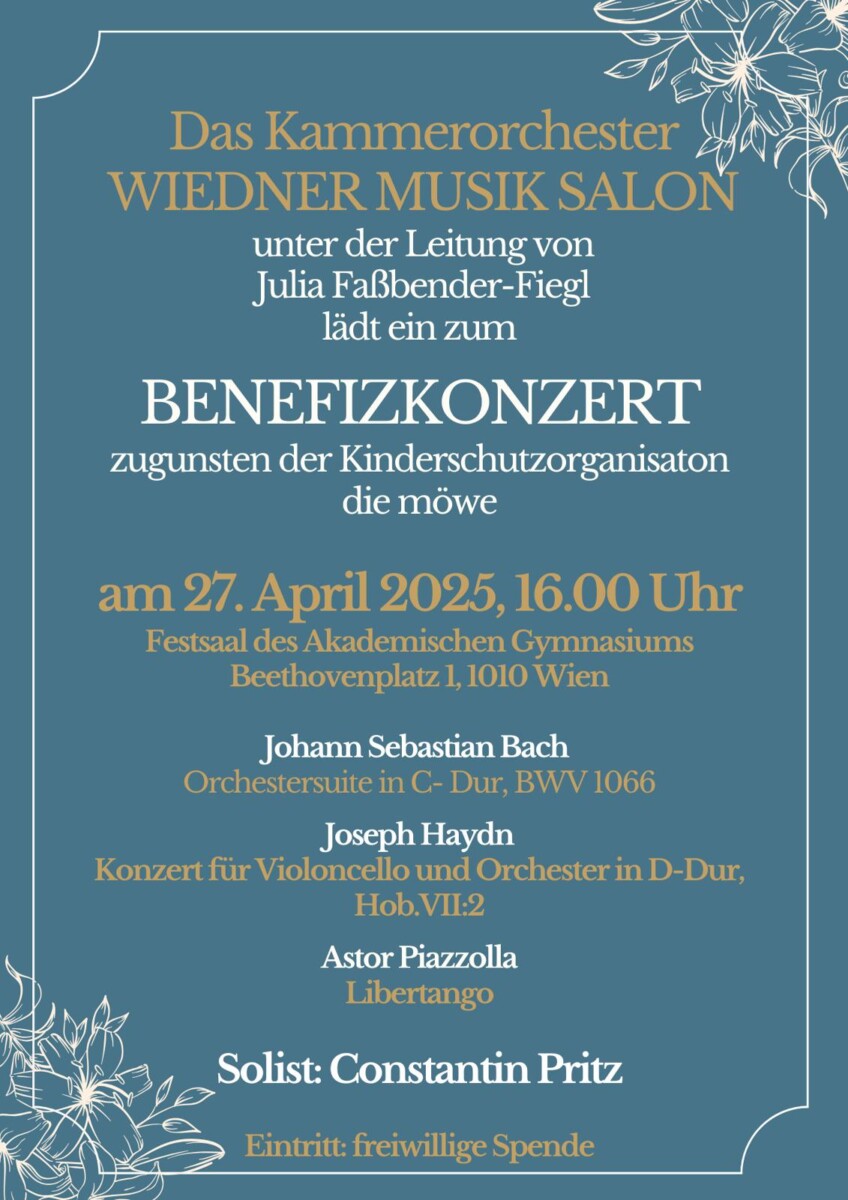 Am Sonntag, 27. April 2025 lud das Kammerorchester „Wiedner Musik Salon“ erneut zu einem Benefizkonzert für die möwe.