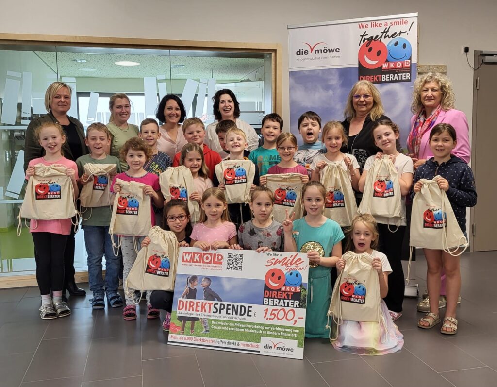 Am 26.05.2024 konnte ein Spendenscheck der Direktberater in Höhe von € 1.500,- für einen möwe-Gewaltpräventionsworkshop an die Volksschule Sierndorf überreicht werden.