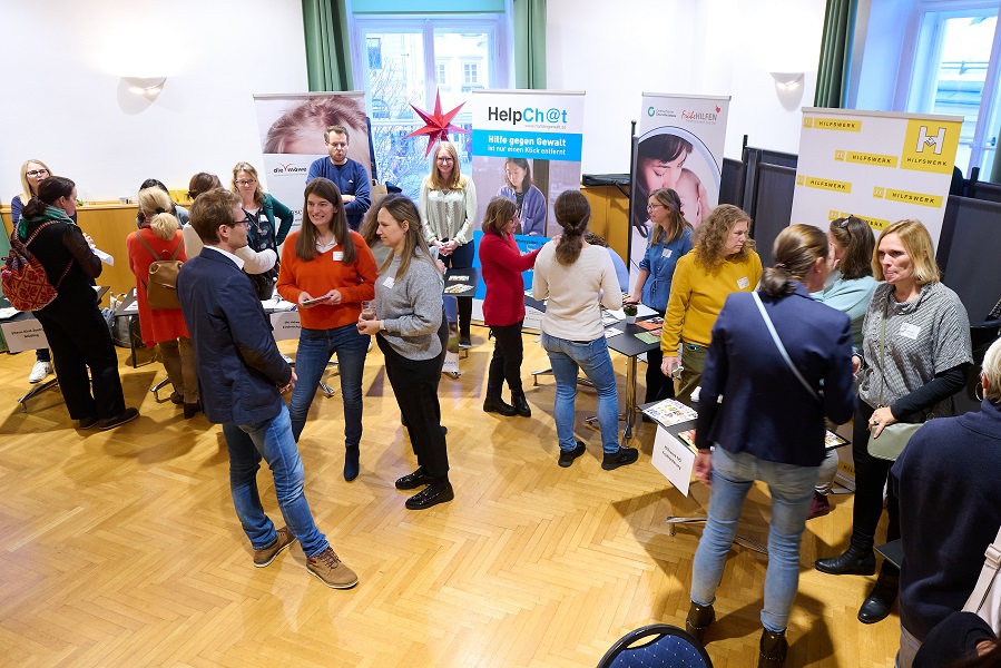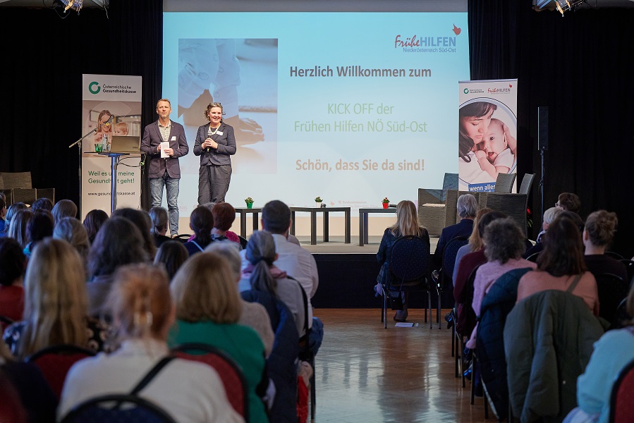 Nach einem Fachvortrag von Klaus Vavrik (Facharzt für Kinder- u. Jugendheilkunde) wurden die Umsetzer*innen der Frühen Hilfen NÖ Süd-Ost vorgestellt. Abschließend wurde sich bei Fingerfood ausgetauscht und vernetzt. Auf dem Marktplatz mit Infoständen präsentierten kooperierende Organisationen ihr Angebot.