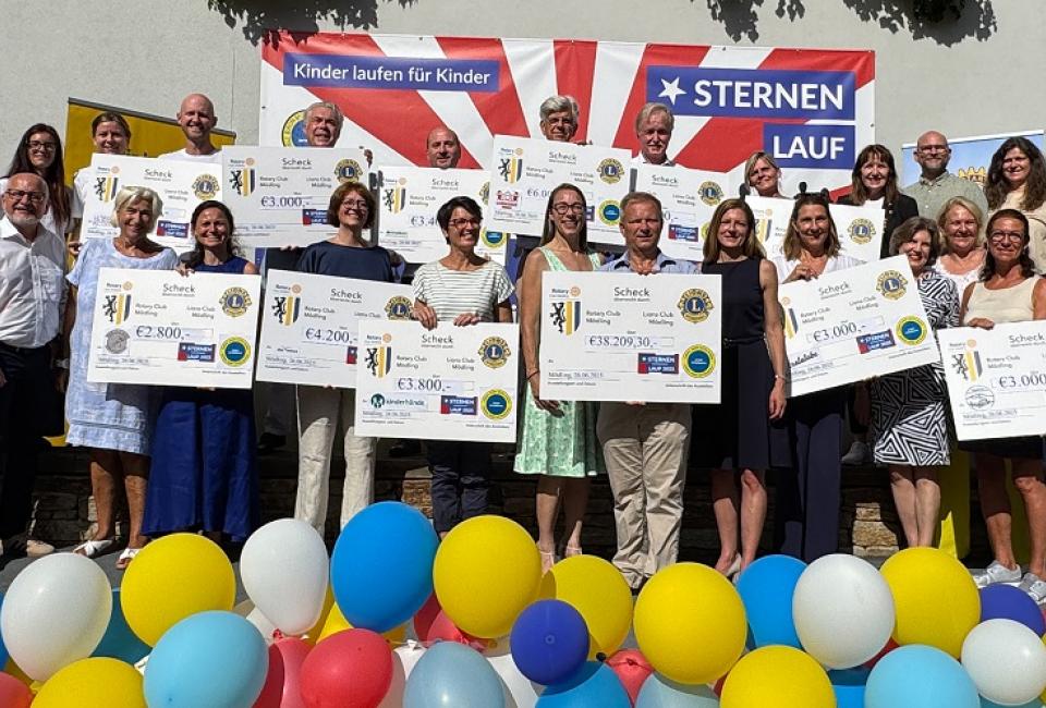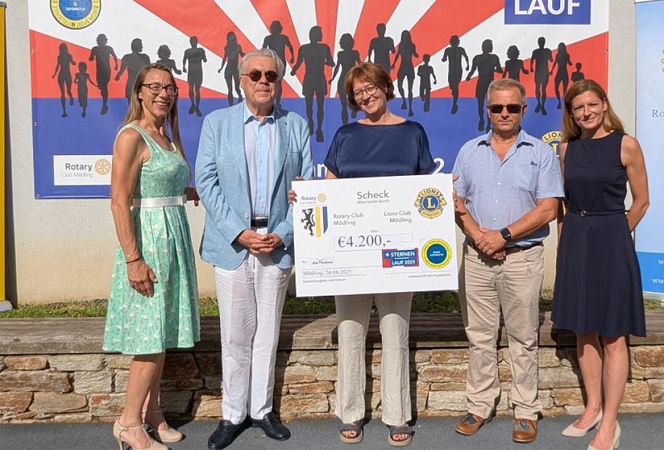 Der 13. Sternenlauf fand heuer von 6. bis 8. Mai 2025 im Museumspark in Mödling statt. Dabei kamen unglaubliche 38.209,30 Euro für wohltätige Zwecke zusammen – eine Summe, die das zweitbeste Spendenergebnis in der 13-jährigen Geschichte des Laufs darstellt. Die möwe erhielt eine fantastische Spende von 4.200 Euro und bedankt sich vielmals bei den insgesamt 1157 Kindern, die mitgelaufen sind, den Organisator*innen und Lehrer*innen sowie den Mitveranstaltern Hubert Rinner (Rotary Mödling) und Stefan Konrath (Lions Mödling).