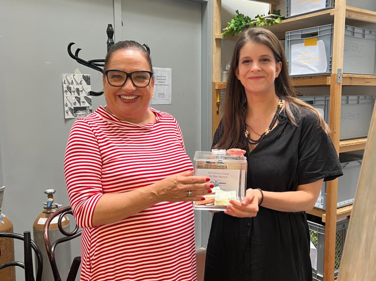 Überreicht wurde die Spendensumme durch Maria Happel, künstlerische Leiterin der Festspiele, und entgegengenommen durch Hannah Perko, Mitarbeiterin im möwe Kinderschutzzentrum Neunkirchen.