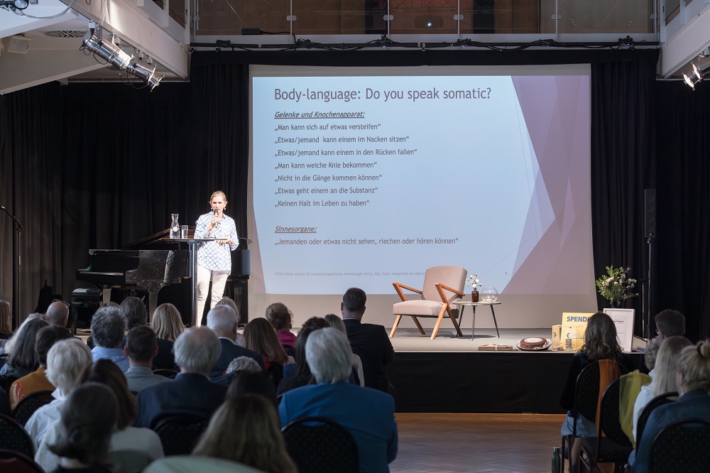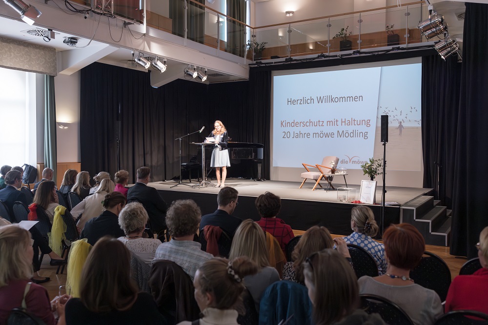 Dipl. Psychologin und Psychotherapeutin Margarethe Kruczek-Schumacher sprach in ihrem Fachvortrag über die körperlichen Symptomatiken nach traumatischen Erlebnissen. Schriftstellerin Valerie Fritsch las aus ihrem Roman „Zitronen“, in dem die Geschichte eines Jungen, dessen Kindheit durch die Gewalt beider Elternteile geprägt ist, erzählt wird. Schülerinnen und Schüler der Montessori ErLEBnisschule Mödling erfreuten die Gäste sowohl mit musikalischen Darbietungen als auch mit einer Tanzperformance und einem Poetry-Slam. Der Kurzfilm „Burned-in“ von Daniel Zineldin und Vivienne Dejon wurde gezeigt und auch das Team der möwe Mödling selbst präsentierte in einem bei der letzten Teamklausur entstandenen Film seine Gedanken zum Thema „Kinderschutz mit Haltung“.