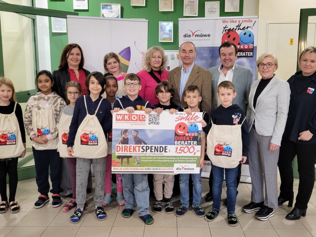 Der Scheck erging an die Volksschule Brunn am Gebirge, die sich über diese Überraschung sehr freuten. „So ein tolles Geschenk, wir kennen die möwe und die Organisation steht für Qualität“, so Volksschuldirektorin Margot Baier. Auch Bürgermeister Andreas Linhart und Gemeinderätin Helga Schlechta zeigten sich begeistert. In dem Paket enthalten sind ein möwe-Präventionsworkshop für Kinder zu den Themen Gewalt in Familien und sexuelle Übergriffe sowie ein Vortrag für die Eltern und Pädagog*innen.