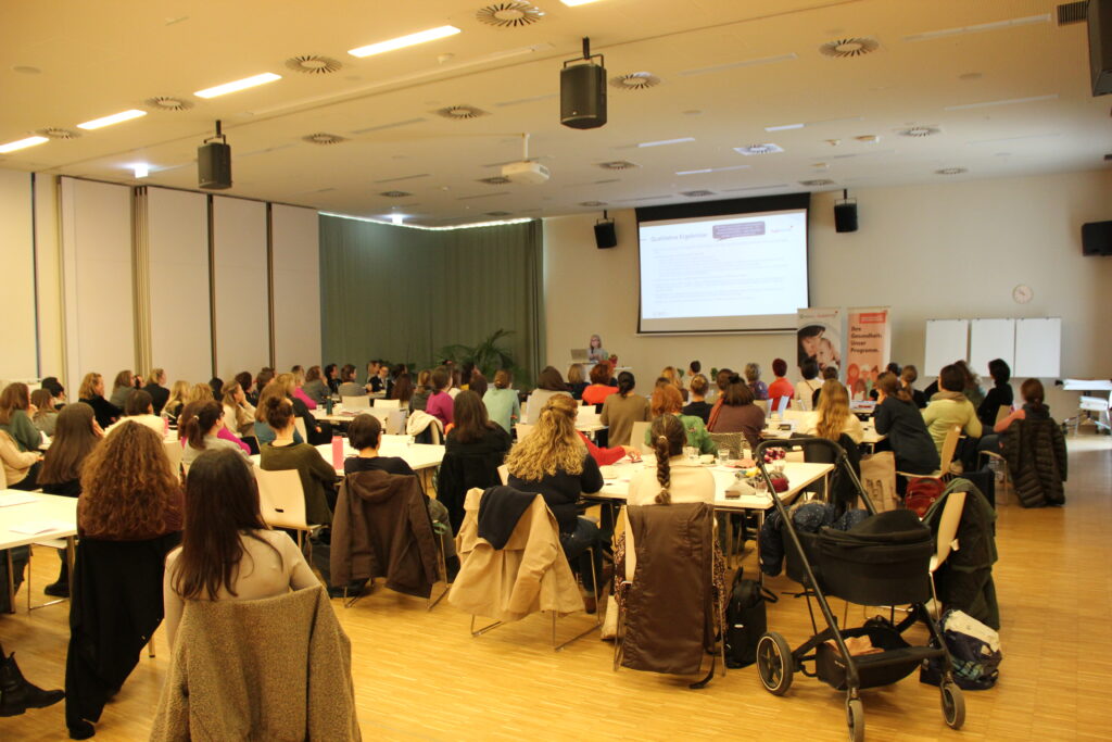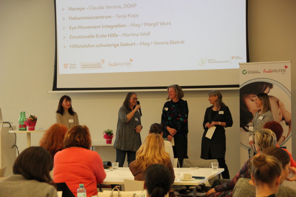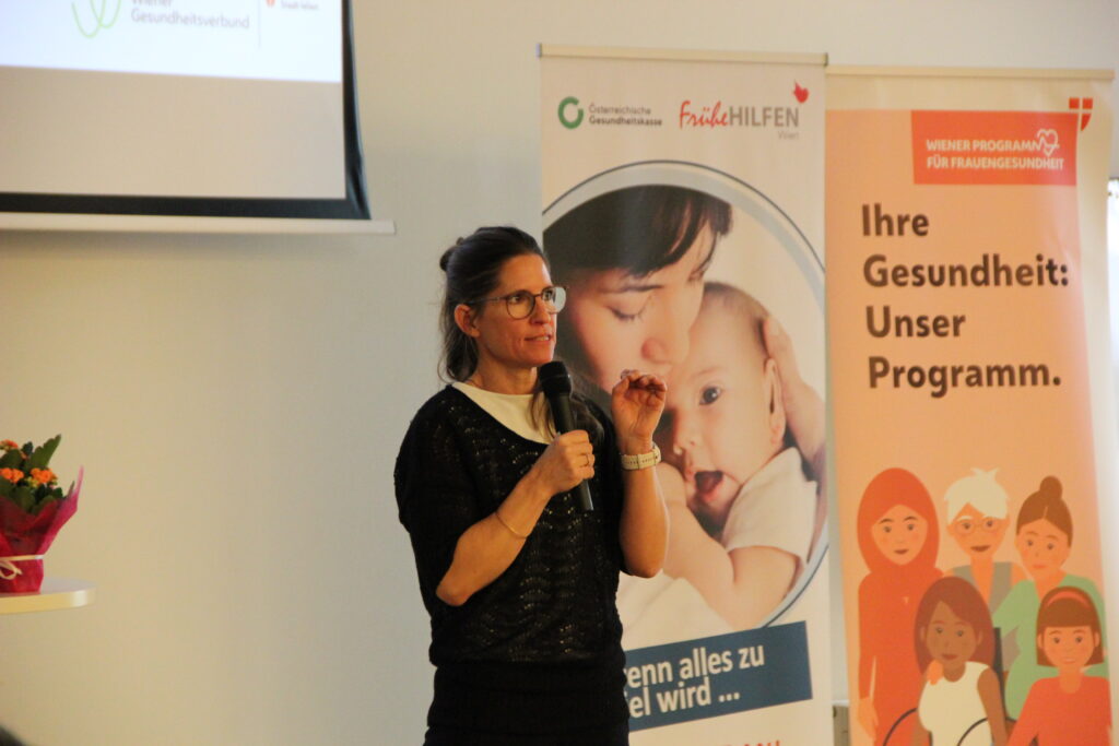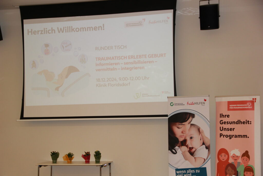 Am 18.12.2024 haben die Frühen Hilfen Wien und das Wiener Programm für Frauengesundheit in Kooperation mit dem Wiener Gesundheitsverbund zu einem Runden Tisch in die Klinik Floridsdorf eingeladen. Eröffnet wurde der Vormittag durch Maga Kristina Hametner, Leiterin des Büros für Frauengesundheit und Gesundheitsziele der Stadt Wien, und Maga Hedwig Wölfl, Geschäftsführerin und fachliche Leiterin die möwe. Rund 120 Teilnehmer:innen nutzten die Gelegenheit, sich zum Thema „Traumatisch erlebte Geburt“ zu informieren, auszutauschen und mit Kolleg:innen aus anderen Institutionen zu vernetzen. Durch den Vormittag führten Maga Drin Christina Bässler vom Wiener Programm für Frauengesundheit und MMaga Birgit Wenty, Zentrale Leiterin der Frühen Hilfen Wien.