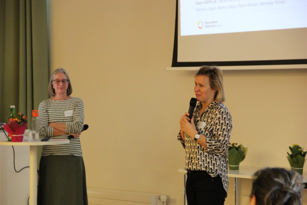 DIin Marion Weigl vom Nationalen Zentrum Frühe Hilfen der Gesundheit Österreich GmbH präsentierte aktuelle Ergebnisse zu den Geburtserfahrungen von Frauen die von den Frühen Hilfen begleitet wurden. Diese wurden mithilfe von Fokusgruppen und einer Online-Umfrage mit validierten Instrumenten erhoben. Die von den Frauen berichteten Erfahrungen waren insgesamt eher positiv – allerdings hat auch fast die Hälfte der befragten Frauen eine Form von nicht-leitliniengerechter oder respektloser Betreuung erlebt z.B. das Ignorieren von Hilfeanfragen bei der Anwendung des Kristeller-Handgriffs verbale Missachtung oder gar körperliche Gewalt (z.B. schmerzhafte Untersuchung unzureichende Betäubung). Die Frühen Hilfen können hier eine wichtige Rolle spielen indem werdende Eltern informiert und bestärkt oder spezifische Unterstützungsangebote vermittelt werden.