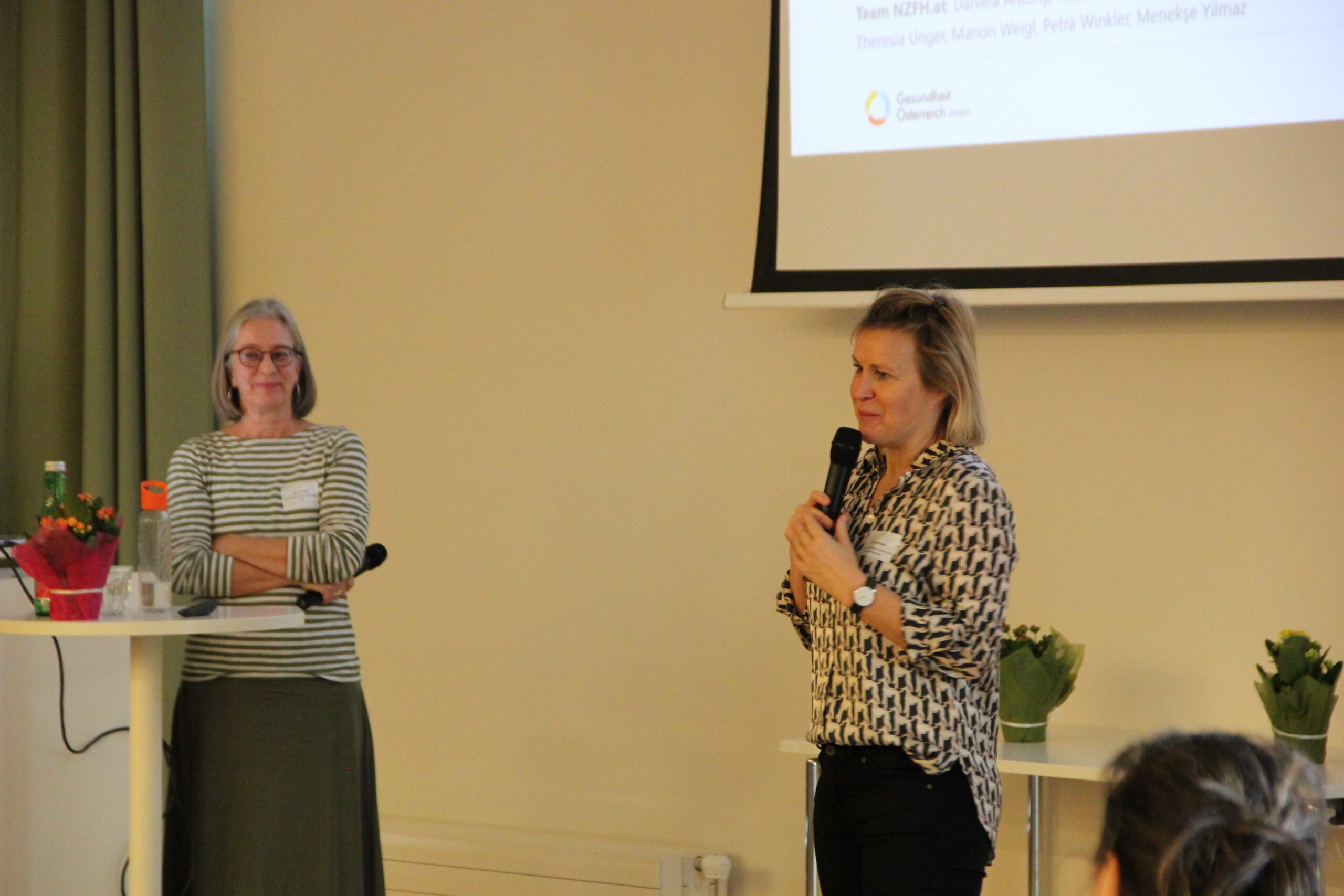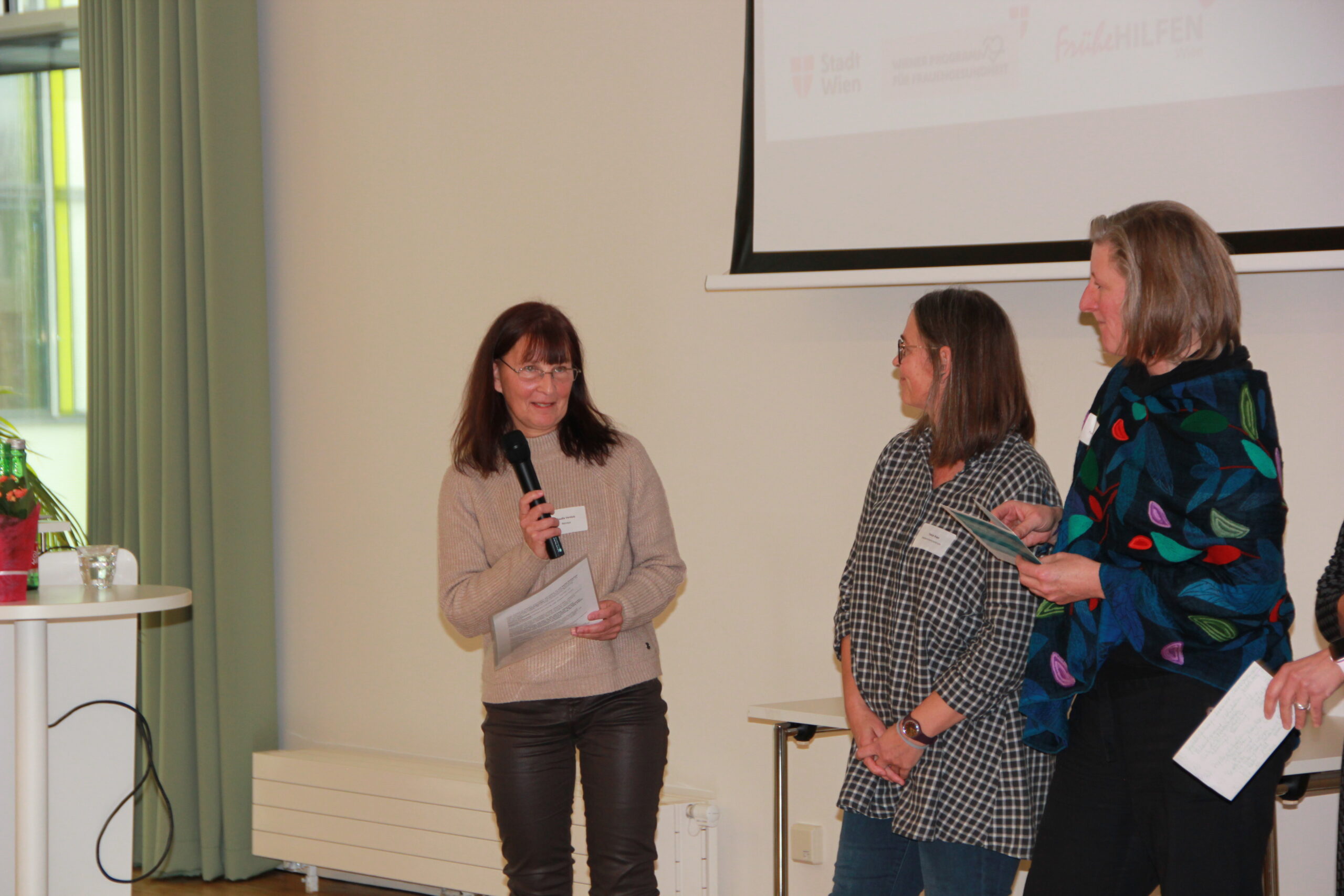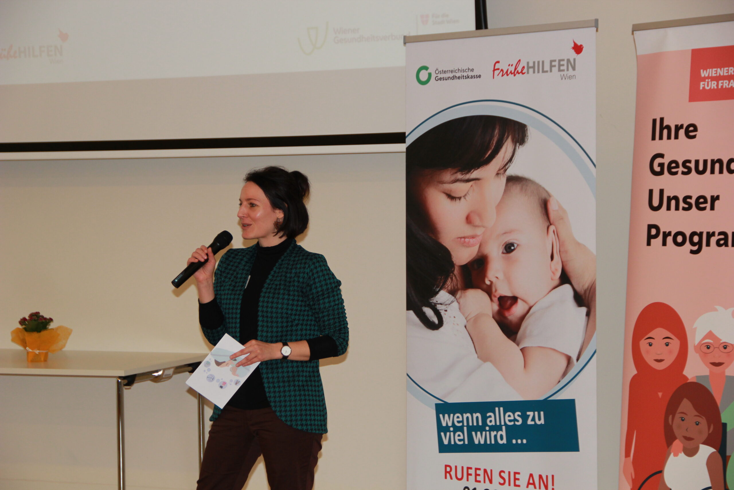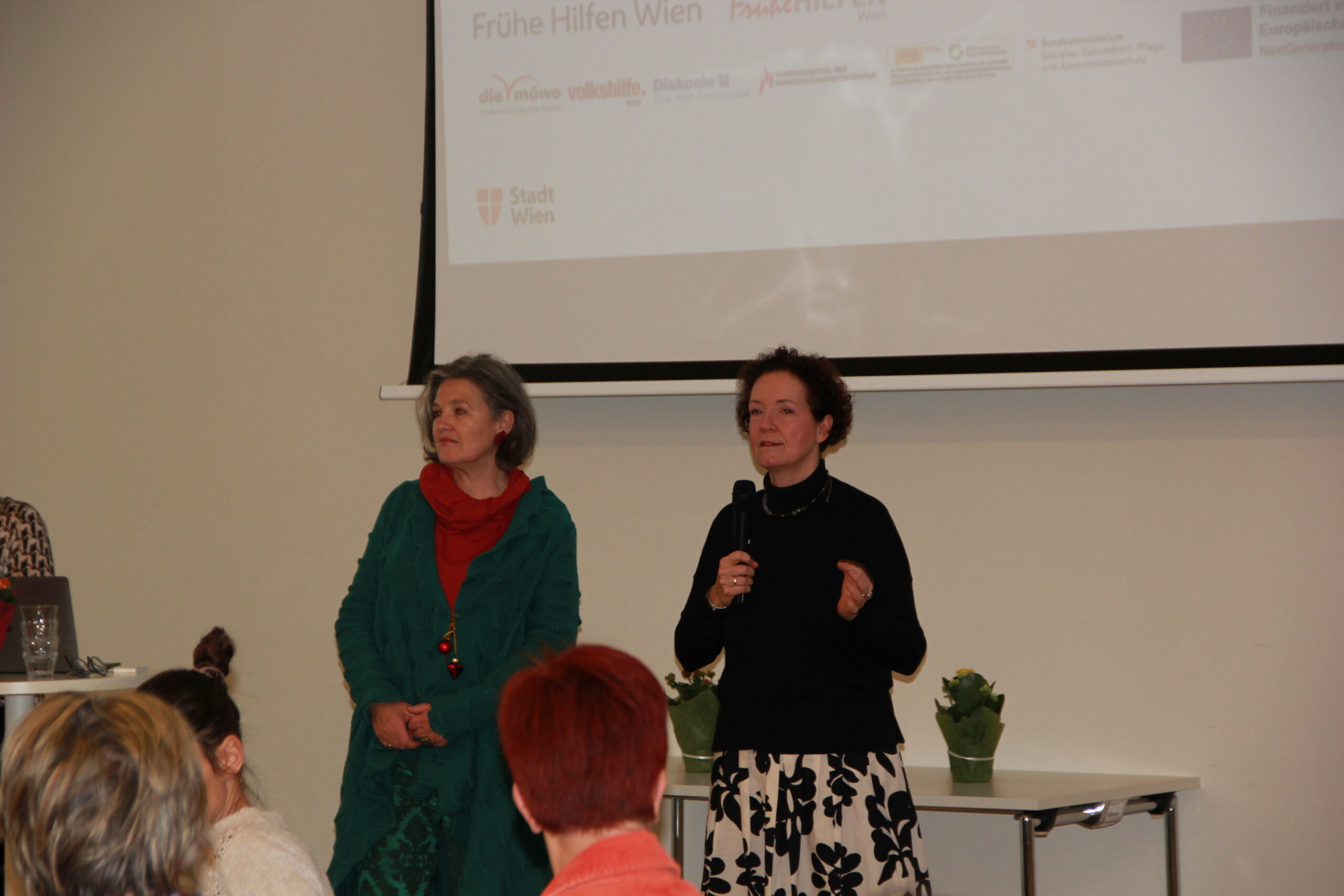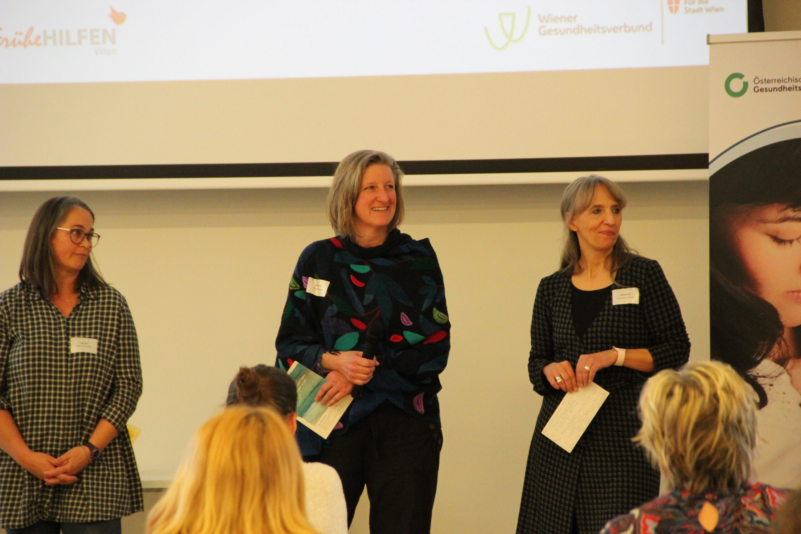 Am 18.12.2024 haben die Frühen Hilfen Wien und das Wiener Programm für Frauengesundheit in Kooperation mit dem Wiener Gesundheitsverbund zu einem Runden Tisch in die Klinik Floridsdorf eingeladen. Eröffnet wurde der Vormittag durch Maga Kristina Hametner, Leiterin des Büros für Frauengesundheit und Gesundheitsziele der Stadt Wien, und Maga Hedwig Wölfl, Geschäftsführerin und fachliche Leiterin die möwe. Rund 120 Teilnehmer:innen nutzten die Gelegenheit, sich zum Thema „Traumatisch erlebte Geburt“ zu informieren, auszutauschen und mit Kolleg:innen aus anderen Institutionen zu vernetzen. Durch den Vormittag führten Maga Drin Christina Bässler vom Wiener Programm für Frauengesundheit und MMaga Birgit Wenty, Zentrale Leiterin der Frühen Hilfen Wien.